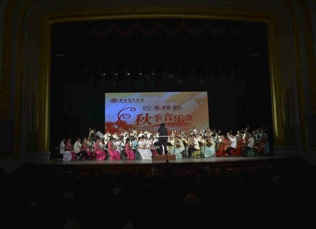 四季情韵音乐会是我院精心打造的市文化惠民精品工程之一,自2012年起从音乐形式到表演风格无不彰显了音乐带给人们的活力与激情。本次秋季音乐会共演奏了《丰收锣鼓》、《瑶族舞曲》、《古槐寻根》、《丝绸之路》等八首经典曲目,其中乐曲《丰收锣鼓》借鉴中国汉族民间音乐元素加以变化发展,推陈出新,充分发挥中国丰富多彩的民族乐器和中国特有的打击乐器的表现能力,既有民族风格,又具时代特点。乐曲《瑶族舞曲》用优美的旋律,表现了能歌善舞的瑶族人民的生活情貌。