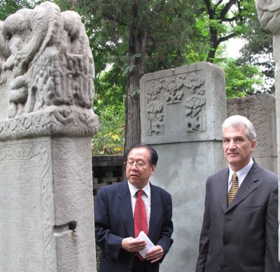 2009年意大利文化遗产部长在驻华大使陪同下来研究墓碑保护项目
